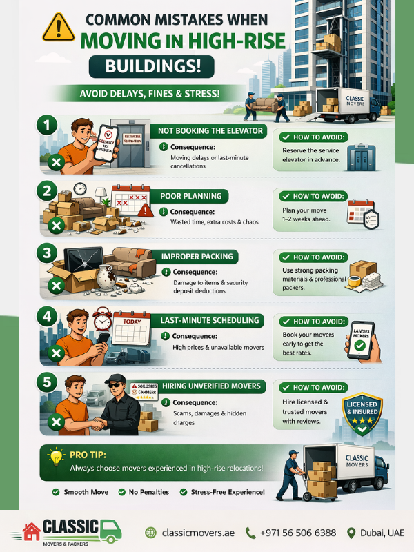 “Many families trust experienced movers in Dubai for safe and efficient apartment moving.” If you’re looking for reliable, licensed, and professional movers and packers, Classic Movers offers expert high-rise apartment relocation services designed to meet your needs. From packing to final placement, our team ensures a safe and seamless moving experience.